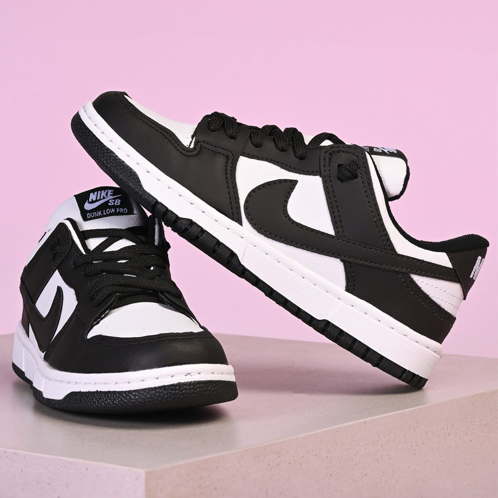 Cabedal (parte superior) em couro sintético de alta qualidade, com acabamento em branco e preto, criando um contraste elegante e moderno.